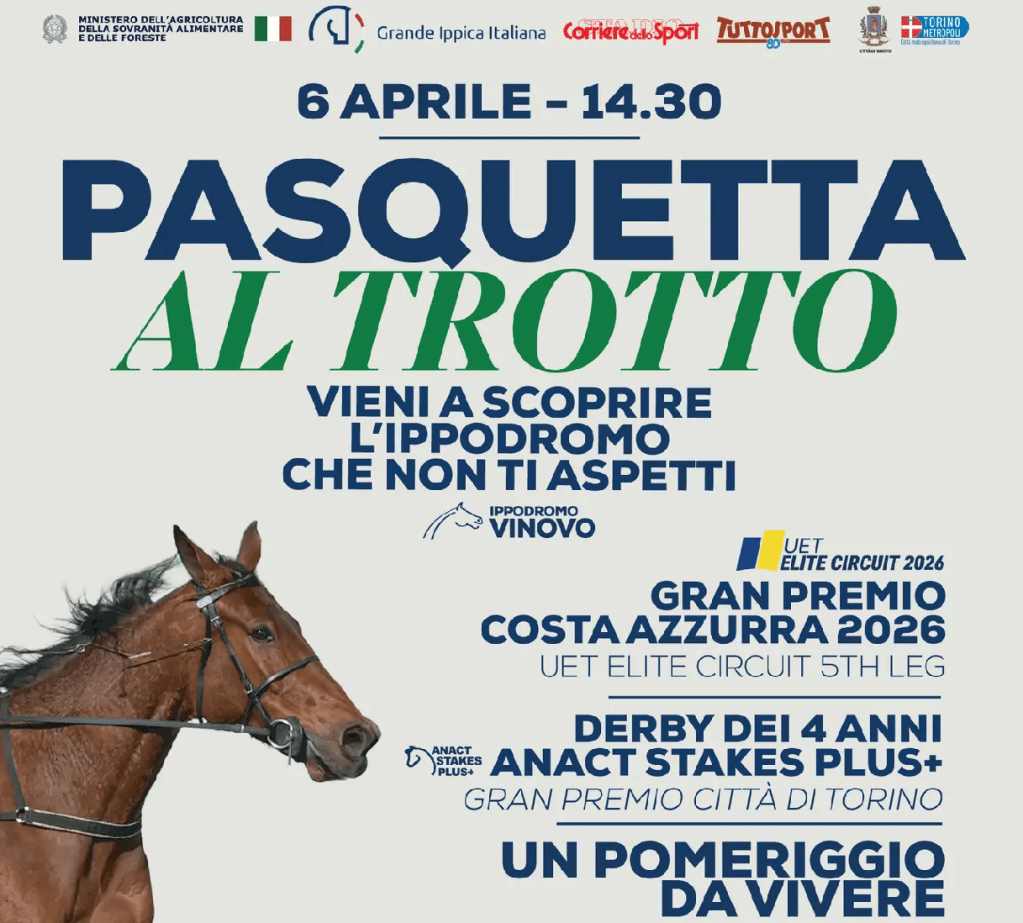I pronostici di Torino trotto. A Vinovo super lunedì di Pasquetta con il Gran Premio Costa Azzurra, Gr1, valido come tappa del circuito elite UET e i derby dei 4 anni, ex Città di Torino. Sono rispettivamente TQQ e II TRIS del giorno. Vediamo i cavalli da seguire!